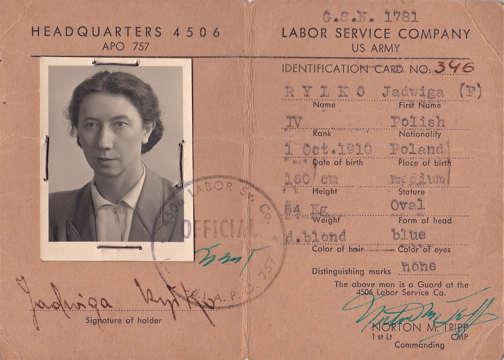 (277) U.S. Army Labor Service Company ID card, where Jadzia worked as a physician in the Polish dispensary (Höchst, 1949).